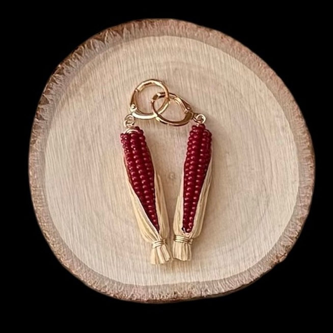 Is there anything more poetic than the rich, deep crimson of autumn? These handcrafted Red Flint Corn earrings aren't just accessories; they are a conversation. Meticulously detailed and elegantly suspended from gold-toned hoops, they invite you to carry a piece of the earth’s rustic beauty wherever you go. Elevate your autumn aesthetic!